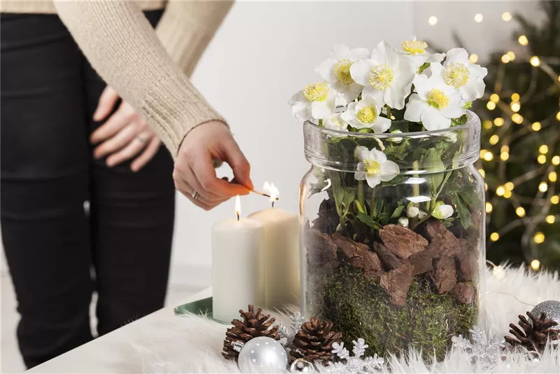 Kleine Koniferen im Kübel machen immer eine gute Figur. Dekoriert mit Outdoor-Lichterketten sehen sie aus, wie kleine Brüder des Tannenbaumes in Ihrem Wohnzimmer. Auf keinen Fall fehlen darf natürlich die Christrose. Sie blüht jetzt, wenn alle anderen Pflanzen im Winterschlaf sind und bereichert Ihren Garten mit eleganten Blüten. Und weil Dekoration nicht fehlen darf, passen eine LED-Trauerweide und bunte Kugeln perfekt vor die Haustür.