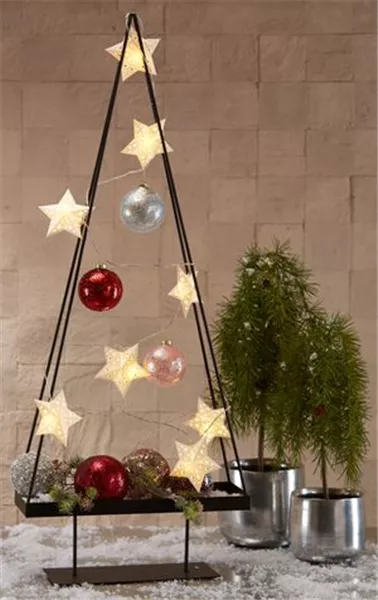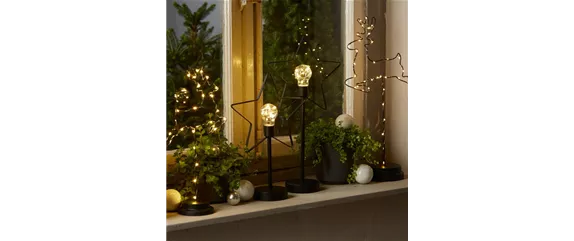 Aus silbernem Draht gewickelte Kugeln oder stilisierte Tannen mit warmweißen Lichteffekten verleihen jedem Raum ein festliches Ambiente. Praktisch: Ein eingebauter Timer sorgt für selbstständiges An- und Ausschalten.