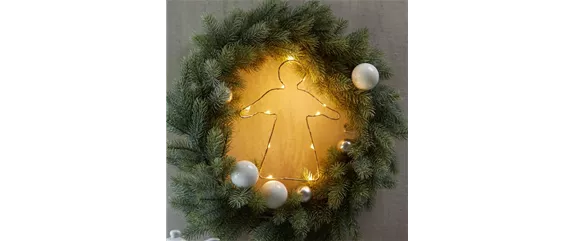 Kränze aus frischen Nadelzweigen lassen sich beispielsweise rasch dekorieren, indem man einen mit Lichterketten umwickelten Metallengel oder -stern aufsetzt. LEDs haben im Vergleich zu anderen Leuchtmitteln viele Vorteile. Sie sind energiesparend: In etwa 90 % weniger Energie wird mit einer LED-Lampe verbraucht, um die gleiche Helligkeit wie mit einer herkömmlichen Glühlampe zu erzeugen. In LEDs sind zudem keine Giftstoffe enthalten. Auch können sie jederzeit berührt werden, da sie nicht heiß werden. Durch das Leuchten in z.B. „Warmweiß“ oder „Tageslichtweiß“ erzeugen die kleinen Lämpchen eine schöne, nicht zu aufdringliche Lichtstimmung.