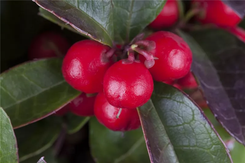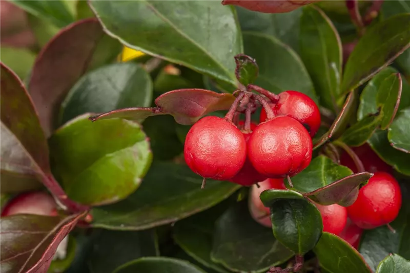Mit ihren runden roten Beeren und dem wintergrünen und schön gefärbten Laub gibt sich die Scheinbeere wie kaum eine andere Pflanze viel Mühe, die dunkle Jahreszeit ein bisschen farbenfroher zu machen.