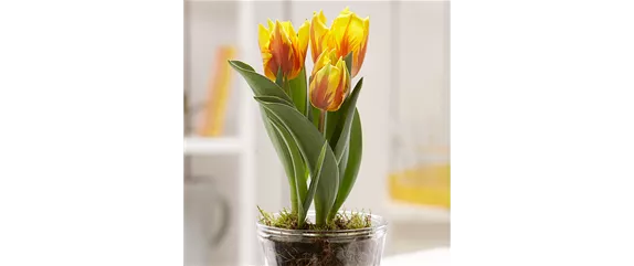 Der botanische Name der Tulpe ist „Tulipa“. Dieser soll dem persischen Wort „dulband“ entstammen, das für Turban steht. Als der Botaniker Carolus Clusius 1592 das erste große Werk über Tulpen schrieb, waren die Frühlingsblüher so begehrt, dass sie regelmäßig aus seinem Garten gestohlen wurden. Die aus Persien stammende Tulpe war schon vor langer Zeit ein Zeichen der Liebeserklärung. Von vielen Dichtern und Malern abgebildet, kam sie bereits in den Erzählungen von „Tausendundeinernacht“ vor. Die Pflege der Tulpe ist sehr einfach. Eine regelmäßige, nicht zu starke Wasserzufuhr tut ihr gut. Staunässe verträgt die Tulpe nicht. Die Töpfe mit den frisch ausgetriebenen Zwiebeln mögen einen kühlen Standort, dort bleiben sie kompakt und standfest. Später darf es auch wärmer werden.