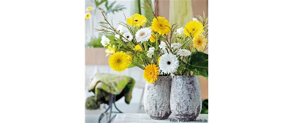 Gerberas für die Vase sollten am besten schräg angeschnitten und in zimmertemperiertes Wasser gestellt werden. Achten Sie darauf, die Vase nicht in einen Durchzug, neben dem Heizkörper oder der Obstschale zu platzieren.