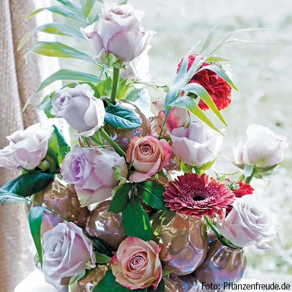 Wie wäre es beispielsweise mal mit Anthurien (Anthurium)? Die exotischen Schönheiten mit den herzförmigen Blüten sind kein Präsent von der Stange, sondern können individuell je nach Persönlichkeit der beschenkten Frau ausgewählt werden. Ein riesiges Angebot – fast 200 Varietäten – ist mittlerweile im Handel erhältlich. Es gibt sie in unterschiedlichen Formaten – von Minis bis Maxi. Auch farblich haben Anthurien viel zu bieten: Sie schmücken sich mit roten, weißen, orangefarbenen und sogar grünen, braunen, gesprenkelten oder zweifarbigen Blüten bzw. Hochblättern. Denn die eigentliche Blüte dieser Pflanze ist der freizügig dargebotene Blütenkolben. Ob als Strauß mit mehreren Stielen Ton-in-Ton oder in Kombination mit anderen Blüten – als Schnittblume hält die Anthurie tatsächlich bis zu drei Wochen. Noch länger Freude bringen Anthurien nur als Topfpflanze. Anders als ihr elegantes Äußeres vermuten lässt, sind sie relativ anspruchslos und einfach zu pflegen. Ein Plätzchen mit nicht zu viel Sonne und eine stets gleichmäßig feuchte Erde reichen völlig aus, damit sie immer neue Blüten bilden.