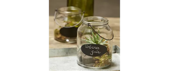Kleinere Gegenstände werden in schönen Vorratsgläsern gesammelt, die eine Beschriftung über den Inhalt erhalten. Die Behälter wirken alleine, als Gruppe oder auch als Übertopf für kleine Sukkulenten sehr dekorativ.