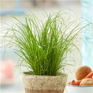 Das Zypergras (Cyperus) ist eine tropische Sumpfpflanze und liebt warme Temperaturen. Angeknabberte Halme können problemlos abgeschnitten werden, falls sich die Katze über ihre Schirme hergemacht hat.