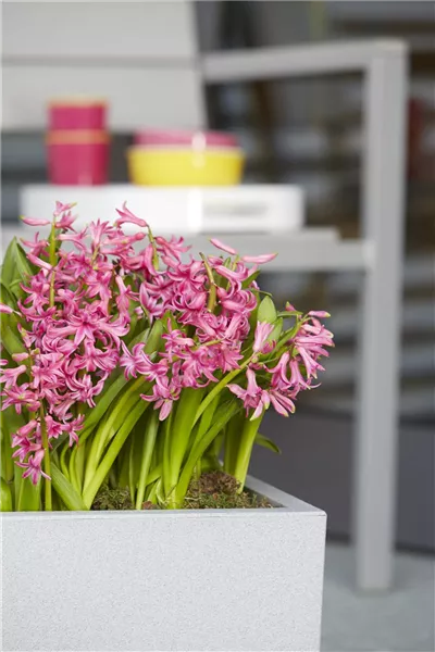 Der Standort sollte sonnig bis halbschattig sein. Gerade, wenn diese Pflanzen ins Haus geholt werden, sollten sie sparsam gegossen werden, damit der Blütenstand nicht zu lang wird. Hyazinthen finden Verwendung in zahlreichen Frühlingsdekorationen.