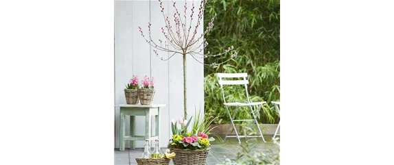 Die Rote Kätzchenweide (Salix) gehört zu den pflegeleichten Gartenpflanzen. Die Weide ist ein aufrechter Strauch, deren Kätzchen im Austrieb leuchtend rot sind. Später färben sie sich dann gelblich ein. Wichtig für ein gutes Gedeihen der Weide ist ein sonniger Standort mit einem gleichmäßig feuchten Boden. Das Weidenkätzchen blüht von Februar bis März und ist eine ökologisch wertvolle Pflanze, die als eine der ersten Nahrungsquellen für Bienen, Hummeln und Schmetterlingen dient.
