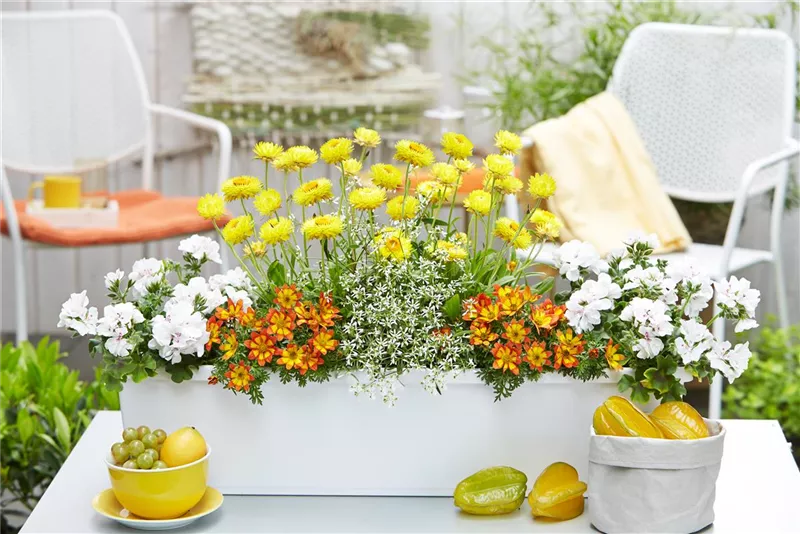 Gute Nachbarn des Kapkörbchens sind die blühfreudige Hängegeranie sowie die Vanilleblume, die mit ihrem bezaubernden Duft überzeugt. Beide blühen unermüdlich bis in den Herbst hinein.
