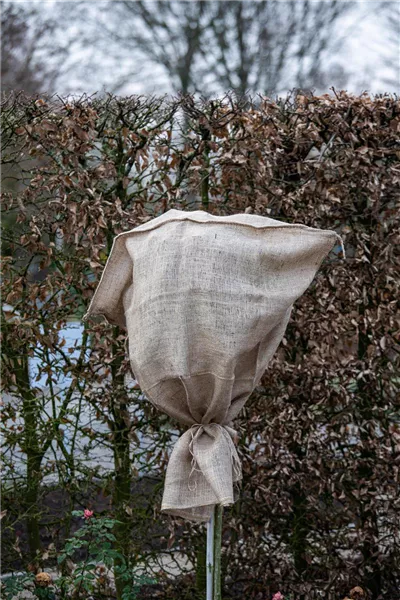 Um Rosen vor dem Winter zu schützen, wird rund um den Stamm Erde, am besten ein Gemisch aus Kompost und Mutterboden circa 15 bis 20 cm hoch angehäufelt. Dadurch ist die frostgefährdete Veredlungsstelle gut vor Frost geschützt. Etwas Tannenreisig schützt zusätzlich vor kalten Winden, außerdem trocknet die Erde durch die Abdeckung nicht so leicht aus. Besonders in kalten Gegenden ist es ratsam auch die Triebe von Strauch und vor allem Hochstammrosen zu schützen. Dafür wird einfach Tannenreisig zwischen die Äste gesteckt und zusätzlich alles mit Winterschutzvlies oder Jutegewebe umhüllt. Diese Schutzmaßnahmen bremsen nicht nur den Wind, sie verhindern auch ein vorzeitiges Austreiben im Frühjahr
