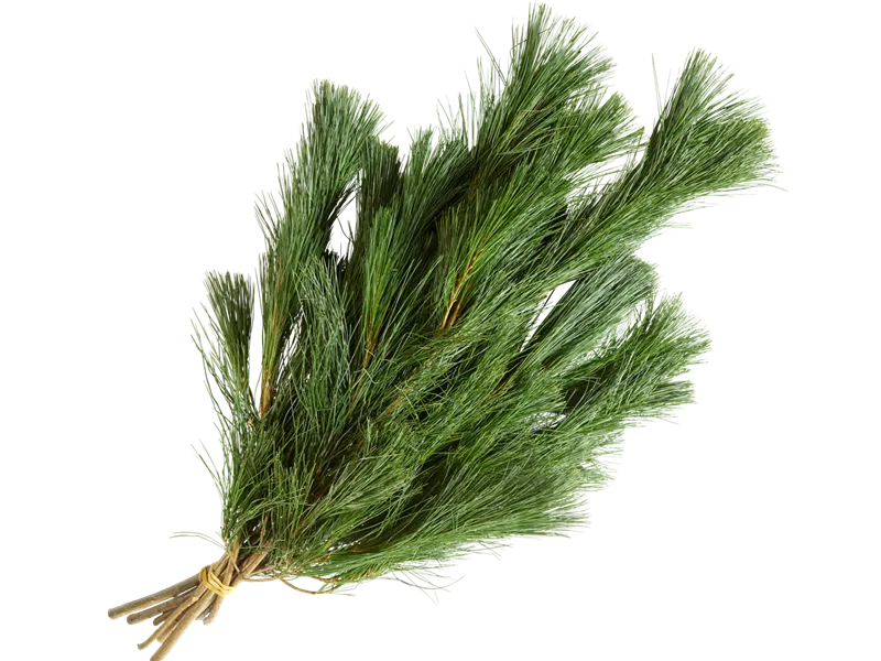 Die Nadeln vom Seidenkiefer-Handbund (Pinus) fühlen sich ganz weich und verspielt an. Die Zweige mit den vielen Verzweigungen eignen sich neben der weihnachtlichen Dekoration auch für den Winterschutz von Beeten oder Töpfen auf Balkon und Terrasse.