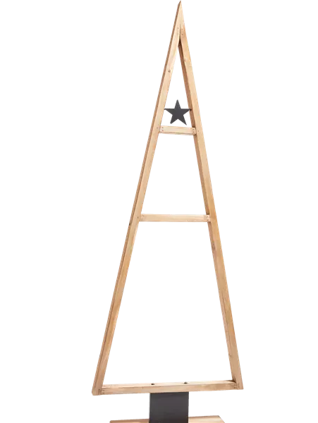 Puristisch und klar im Design wirkt der Holz-Baum in der Weihnachtszeit. Mit seinen Maßen eignet er sich auch perfekt für kleinere Räume oder Ecken, ohne dass Sie auf einen Baum verzichten müssen. Wer möchte, kann ihn noch individuell schmücken oder ihn einfach nur Baum sein lassen.
