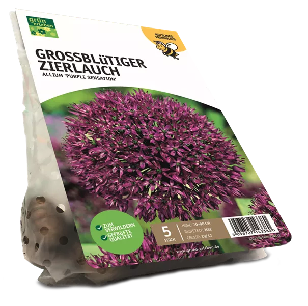 Dieser Zierlauch zeigt im frühen Sommer leuchtend violette Blütenkugeln. Die dichten Sternblüten setzen markante Akzente und locken Bienen und Schmetterlinge an. Höhe: 70 – 90 cm.